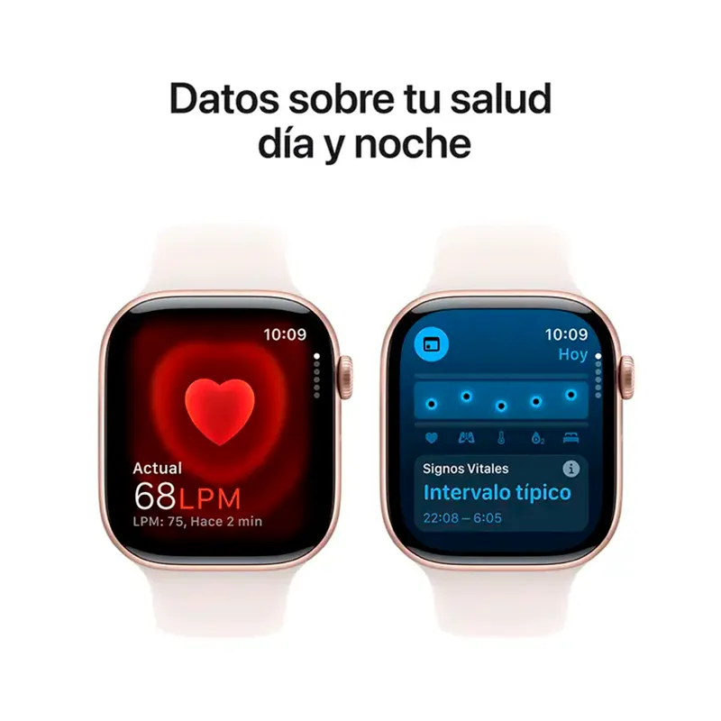 DATOS AVANZADOS DE SALUD — Hazte un electrocardiograma en cualquier momento.⁵ Recibe notificaciones si tu frecuencia cardiaca está alta o baja, o si tu ritmo cardiaco es irregular.⁶ Ten un panorama más completo de tu ciclo menstrual y recibe estimaciones retrospectivas de ovulación.⁷ Consulta datos de salud nocturnos, como tu frecuencia cardiaca y respiratoria, y muchos otros con la app Signos Vitales.⁸ Monitorea tus horas de sueño.