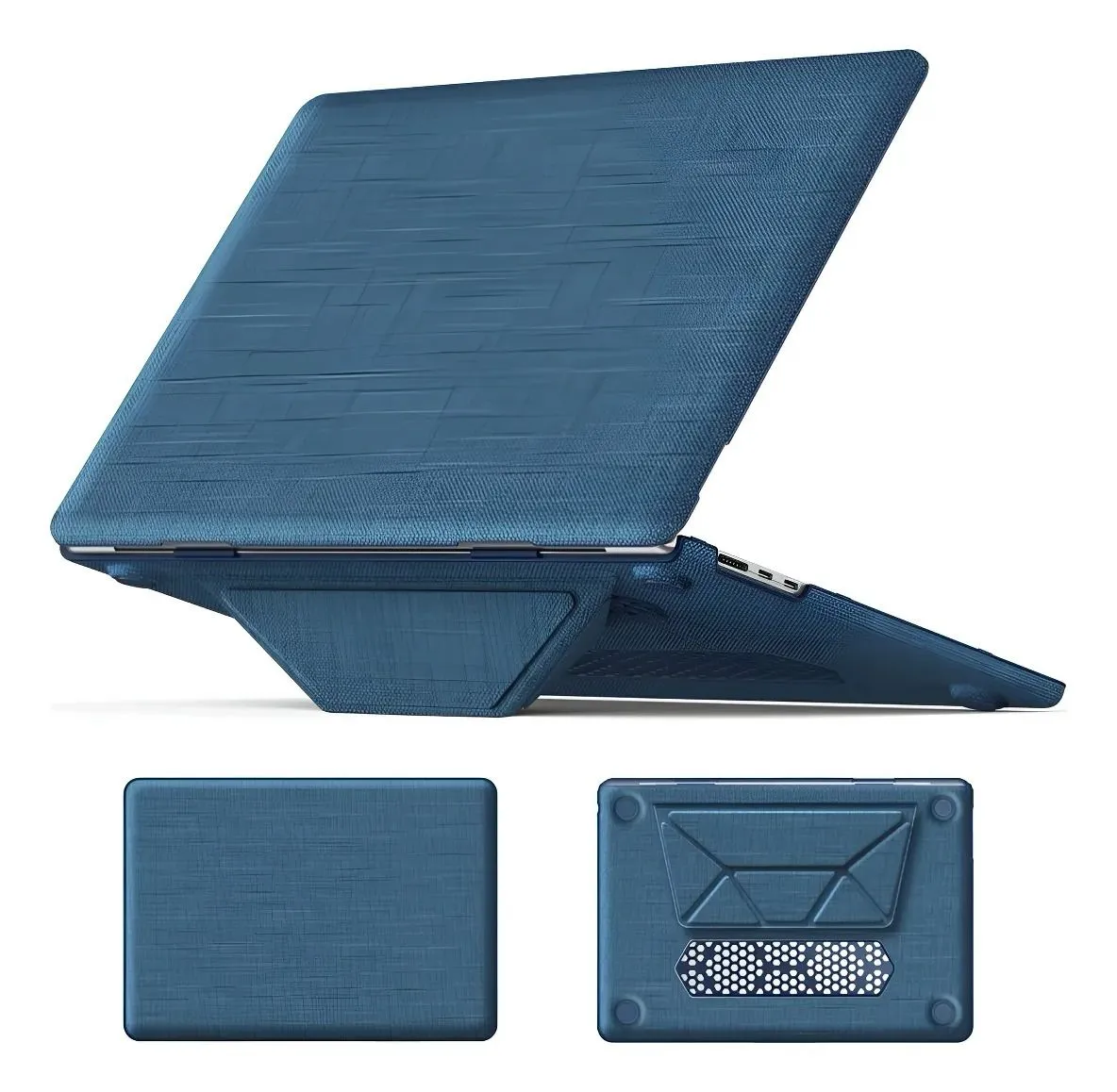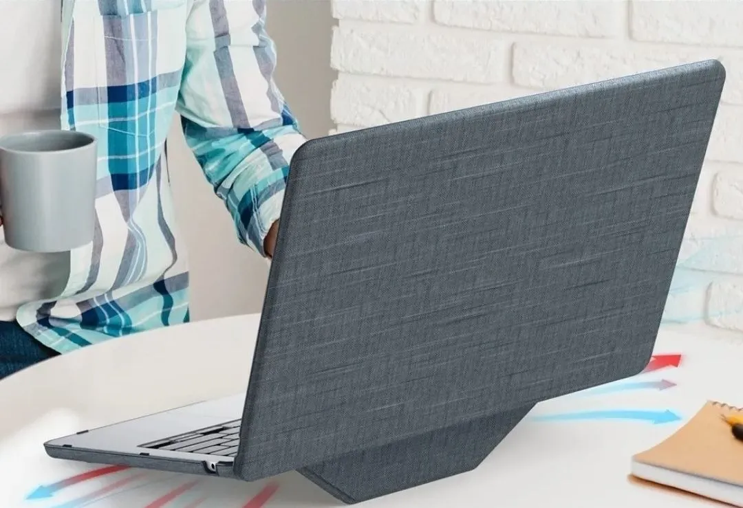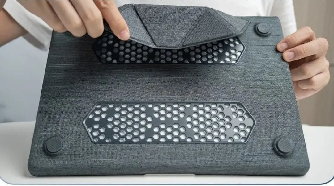 La estructura con ventilaciones favorece la disipación del calor, evitando el sobrecalentamiento del equipo. Su diseño permite el acceso a todos los puertos y conexiones sin interferencias. Cuenta con un soporte magnético incorporado que eleva la laptop a un ángulo ergonómico para mejorar la postura y la experiencia de uso. Ideal para quienes buscan un equilibrio entre protección, funcionalidad y diseño sofisticado.